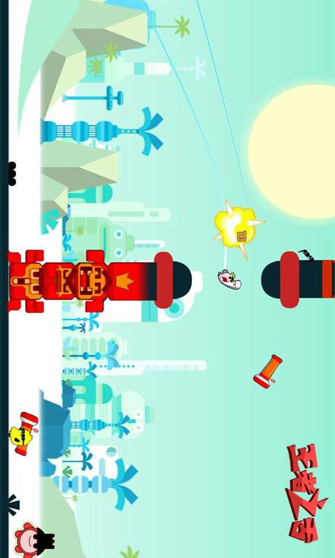 飞行过程中再次点击屏幕舌头将松开,主角和敌人都会在惯性的作用下继续移动,因此可以感受到游戏奇妙的物理引擎效果。