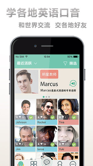 4、学各地英语口音:社交新语既可学英语,也可教母语。通过"交换母语",跟世界各地学习地道发音,和世界交流,交各地好友。
