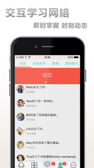 5、交互学习设计:课时动态,学习评论,我的圈子,英语学习即时掌握;每天学习不再枯燥,嗨翻每一天!