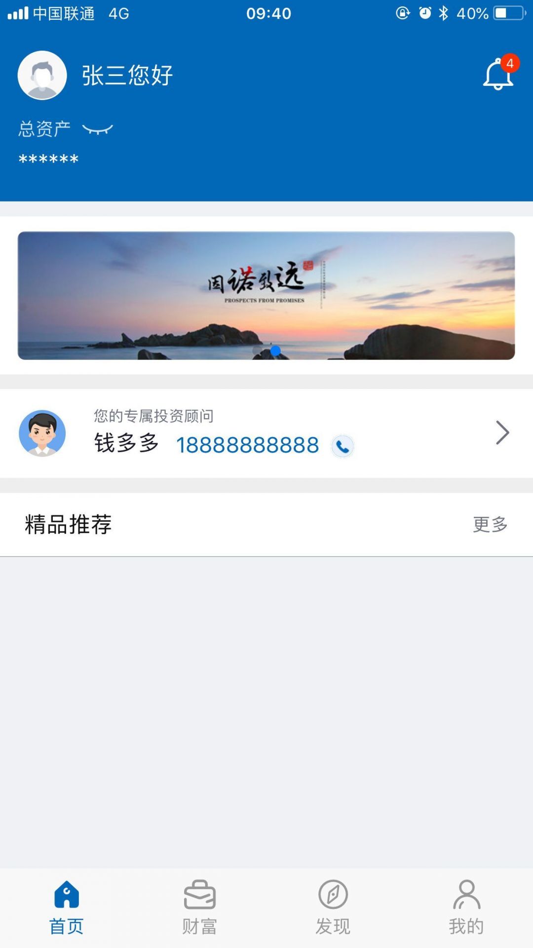 2、进入首页,查看提供的专属投资顾问和推荐的投资产品