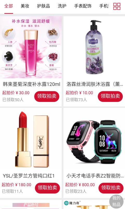 1元起拍商品,商品起拍价格超低,给消费者更多产品起拍优惠;