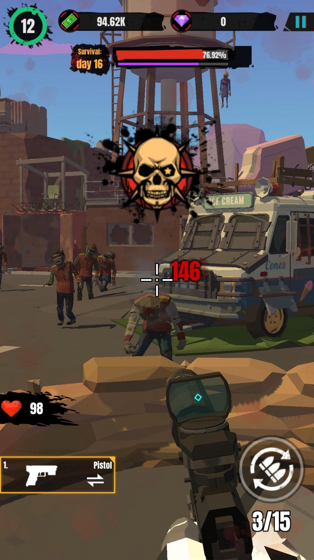 2.游戏中弹药是有限的,当你的弹夹快要打空时,记得要及时换弹,不然僵尸冲过来就不好了。