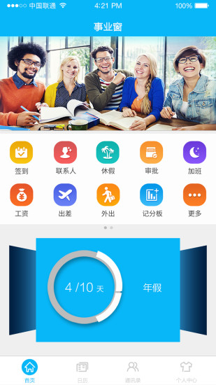 主要服务与企业管理,事业窗app为企业和员工剔红一周工作分析,推送企业最新资讯,还有一些便捷的办公应用。