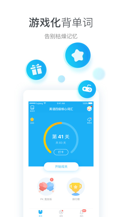 玩游戏也能背单词,开心收集词能量,更有丰富的闯关场景等你来开启。