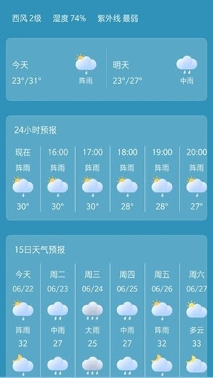 这个平台可以进行全国各地的天气预测,拥有精准的定位,为你实时播报天气,不仅可以预测天气外还有风速,空气湿度以及紫外线等等,遇到恶劣天气也会有消息推送给用户,让用户们出行更安全,不仅如此还能超长预测15天内的精准天气,为出行游玩做准备,避开坏天气,玩的更开心。
