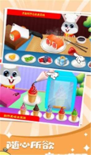 哇哦,好香呀~”模拟小镇餐厅乐园一家很棒的餐厅,好多动物家族的小伙伴都去捧场啦,你也来看看吧。餐厅虽小但档次却不低呢,丰富多样的菜品让客人们直呼过瘾。大家都赞她不仅做的东西味道鲜美,而且服务也很周到。可是,客人越来越多,有点招呼不过来了。哎!要是有副厨帮忙就好啦。亲爱的,就是你啦!你一定能把这里打造成小镇上的米其林餐厅,对吧?