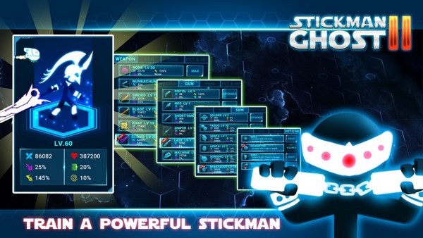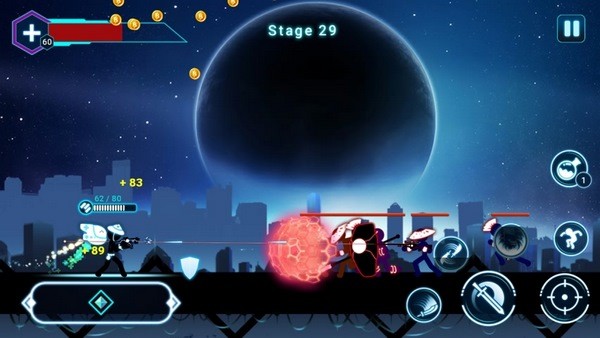 1.玩家要控制火柴人不断的跳跃躲避敌人的子弹