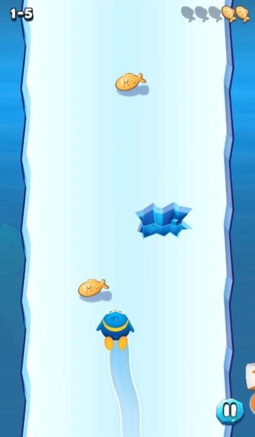 路上会不断的出现"鱼饼",企鹅爸爸只要集齐五个鱼饼便可以获得一块冰块。