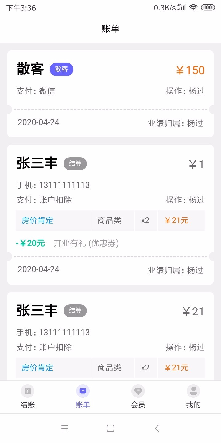 1.成功收款的账单都会被保存起来,查看账单的时候就能了解客户的消费内容;