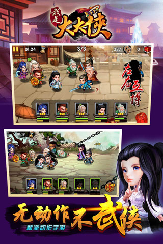 我是大大侠是一款拥有Q萌元素的动作卡牌手游,不同的武侠角色都可以让玩家自由的收集,每一个角色都能够获得更多的养成方式,你所见过最可爱的萌武侠,群侠云集,再现武林奇迹。可视化动作,华丽特效的武林神技,群侠角力,即时战斗爽翻天。而且动作的设计也会更加的精彩,各种各样的武林神技能够让玩家自由地掌握,要汇聚更多的英雄,组建强大的作战阵容,可以帮助你快速的进行战斗,并且拥有更加爽快的挑战体验,快来下载体验!