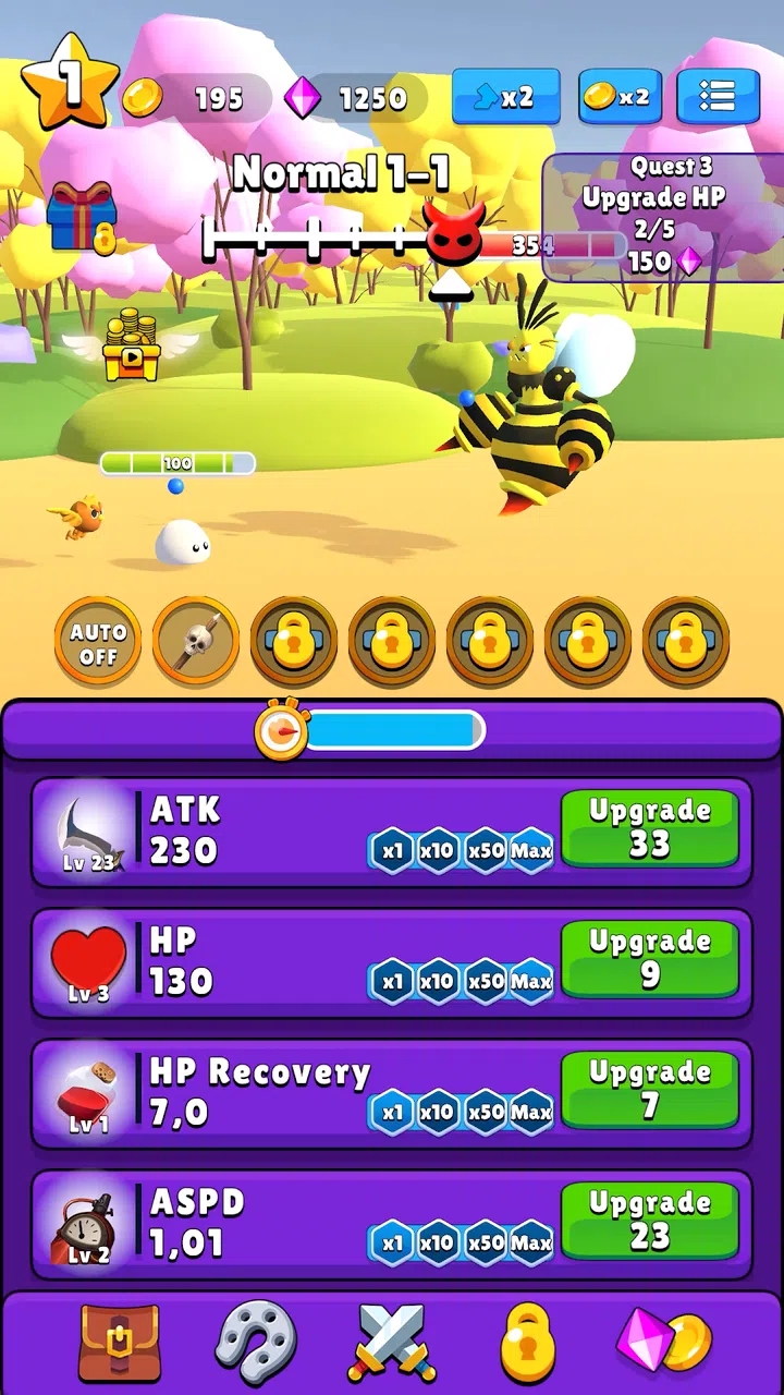 - 离线也能升级!即使在您休息的时候,史莱姆的狩猎脚步也未停歇。离线也能赚金币、赚道具,收获满满。
