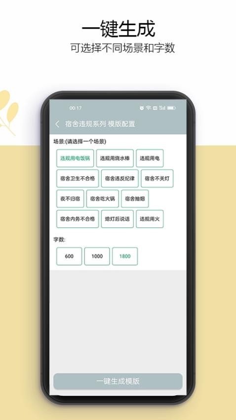 选择一个场景和字数,然后就可以一键生成对应的检讨书