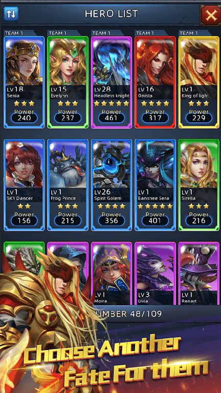 不同类型的英雄自由收集,解锁英雄图鉴,各种华丽英雄组合帮助自己增强战力;