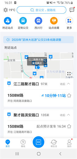 1. 首页:软件首页为用户提供了实时的公交到站信息和公交路线查询入口。