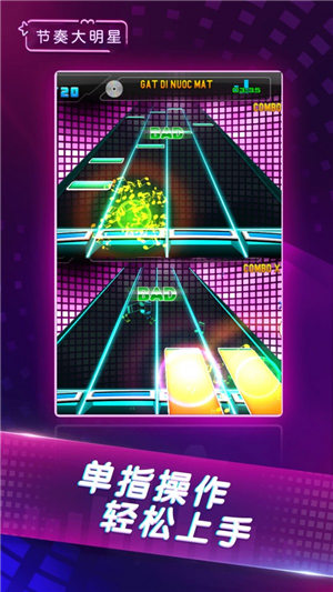 《节奏大明星》是一款音乐节奏类手机游戏。游戏中,玩家可以随着音乐的节奏点击屏幕上的音符,跟随音乐节奏享受游戏的乐趣。