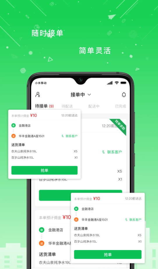 1、平台上每天有更多相关的优质配送订单更新,您可以随意接单完成任务,收取佣金。
