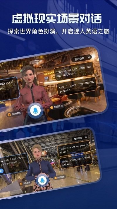 2、全真的视觉外观,二语语言的全新的虚拟交互,使二语学习和练习,自然而然地发生,融入在场景交流和知识话题的探索之中,整个二语的新世界就是你无形的课堂。