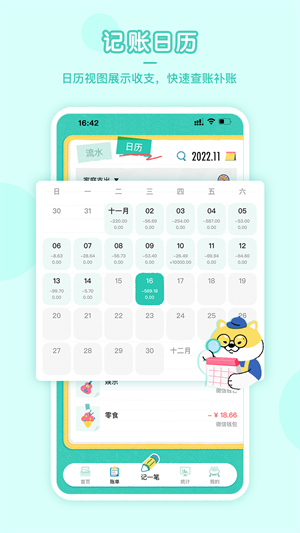 5. 智能提醒:阿柴记账软件提供智能提醒功能,可以帮助用户及时记录和管理收支数据,避免遗漏。