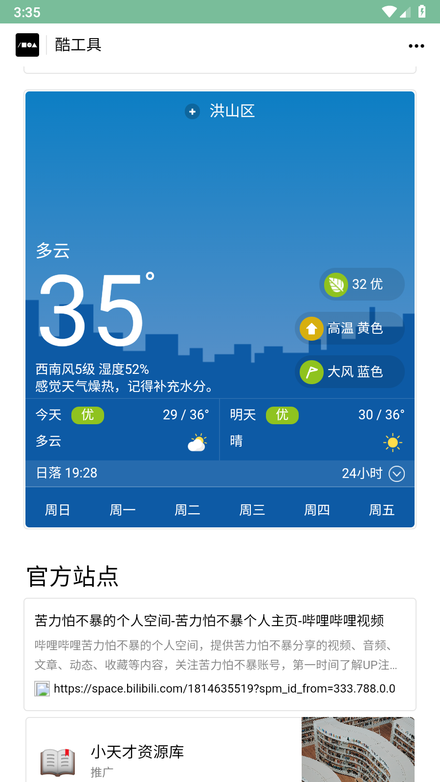 6. 天气预报:提供用户所在城市的实时天气信息,方便用户了解天气状况,合理安排日常生活。