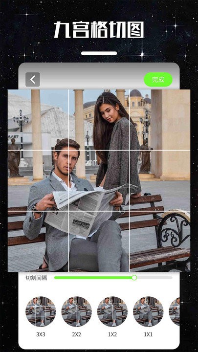 2. 多种尺寸支持:该应用支持多种尺寸的图片编辑,包括正方形、长方形、横幅等,满足不同场景下的需求。