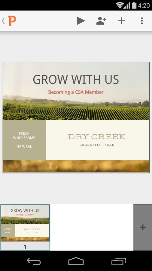 在 Android 手机或平板电脑上安装 Google 幻灯片应用后,您便可以创建、编辑及与他人一起协作处理演示文稿。
