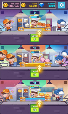 闲置餐厅大亨是一款模拟经营类的游戏,玩家在游戏中将扮演一位餐厅老板,通过经营餐厅来赚取利润,并扩大餐厅的规模。游戏采用了放置类的玩法,玩家不需要实时操作,只需要在规定的时间内进行经营即可。