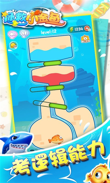 游戏主角是一只小金鱼,它被困在了一个玻璃缸里,玩家需要通过使用各种道具,帮助小金鱼游到安全的地方。游戏共有50个关卡,每个关卡都有不同的难题和障碍,玩家需要仔细思考,利用道具解决难题,让小金鱼顺利通关。