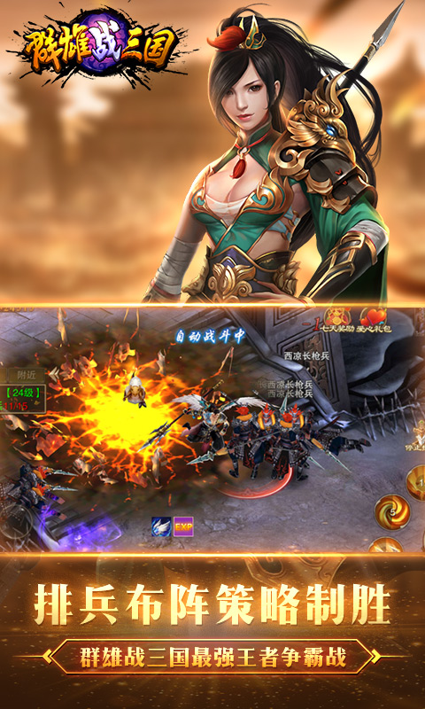 《群雄战三国》是一款以三国时期为背景,以策略、战斗和城市建设为核心内容的游戏。玩家将扮演一位从黄巾起义开始的三国时期将领,通过不断发展自己的势力,进行战斗、完成任务、发展城市建设等手段,最终实现一统天下的目标。