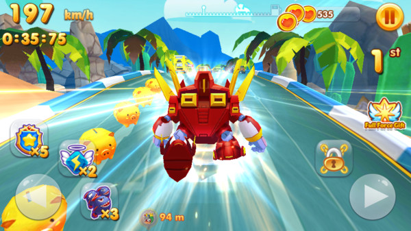 3. 道具与道具战:玩家可以在赛道上收集道具,使用道具来干扰对手或提升自己的速度。