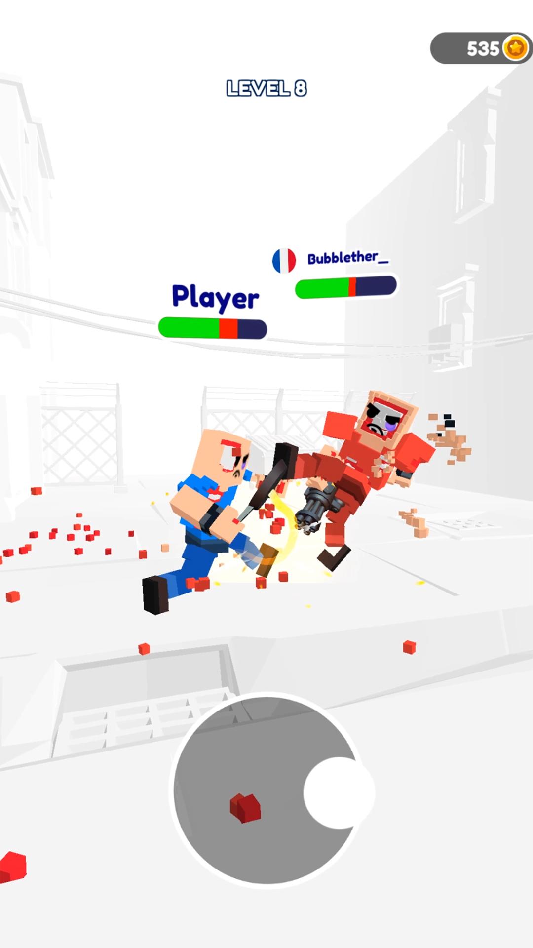 2. 进入战斗场景后,玩家需要通过点击屏幕来控制方块玩偶角色的移动和攻击。