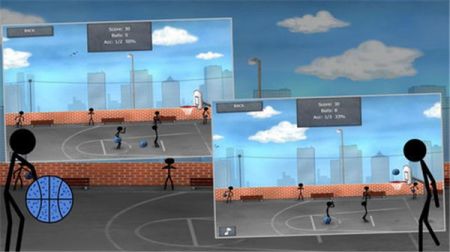 1. 游戏操作:玩家通过屏幕上的虚拟按钮操作火柴人完成投篮、运球、突破等动作。