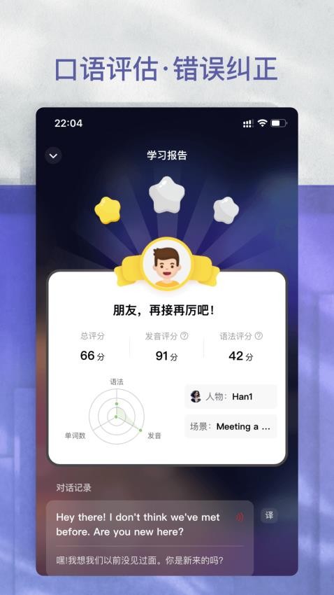 4. 口语训练:通过智能对话功能,模拟真实场景,帮助用户提高口语表达能力。