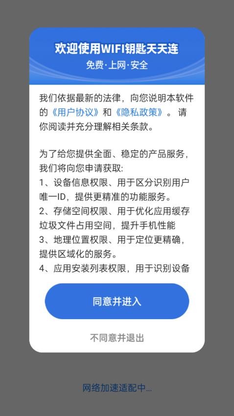 WIFI钥匙天天连是一款便捷实用的无线网络连接工具,致力于帮助用户快速、安全地连接至各类WIFI网络。无论您身处何地,只要有WIFI信号,这款应用都能助您轻松上网,享受无忧的网络体验。