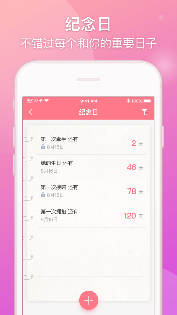 1. 每日一句:每天为用户推送一句温馨的话语,提醒用户关注彼此的感情。