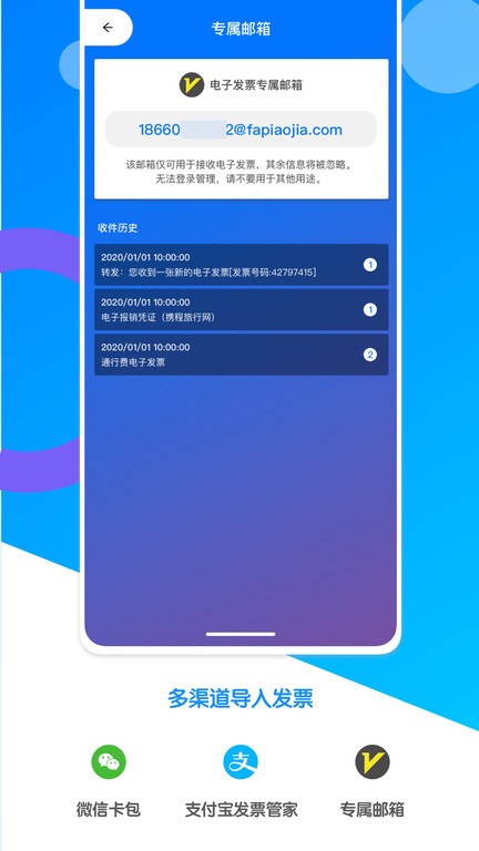 1. 用户可以通过拍照或扫描的方式将纸质发票转化为电子发票,并导入到应用中。