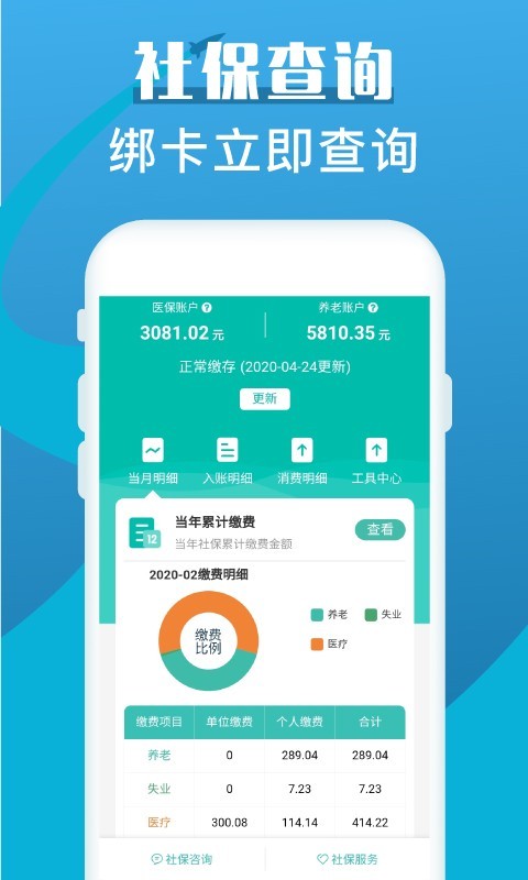 2. 社保账户余额查询:用户可以查询自己的社保账户余额,包括个人缴纳部分和单位缴纳部分。