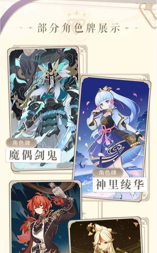 1. 卡牌收集与养成:玩家可以通过完成任务、挑战副本、参与活动等方式,获取原神中的各种角色卡牌,并通过升级、强化、觉醒等方式提升卡牌的能力。