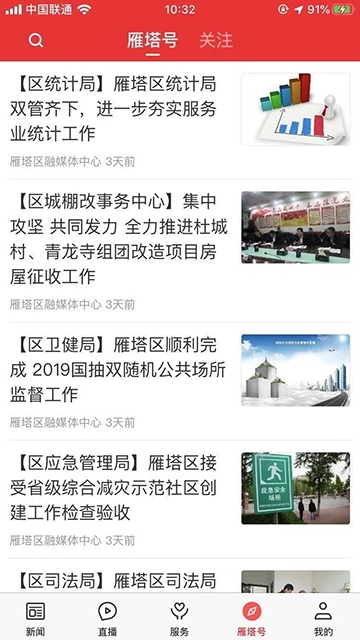 1.有这新闻、直播、服务、雁塔号、我的等的众多优质的手机端的入口;