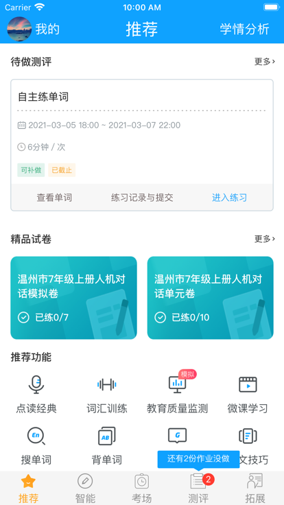 2. 智能练习:通过智能算法,为学生推荐个性化的练习题,帮助他们巩固所学内容。
