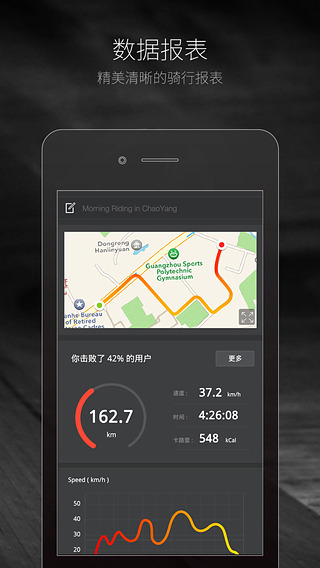 2. **数据记录**:全面记录骑行速度、距离、消耗卡路里等详细数据,帮助用户了解自己的骑行习惯和身体状况。