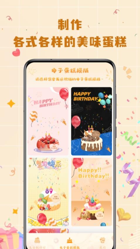 2. 个性化定制工具:用户可以通过工具自由调整蛋糕的颜色、蜡烛数量等,打造个性化的生日场景。