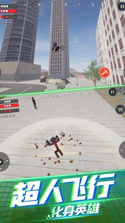 1. 火柴人英雄具有独特的绳索技能,可以在建筑间快速移动,攻击敌人。