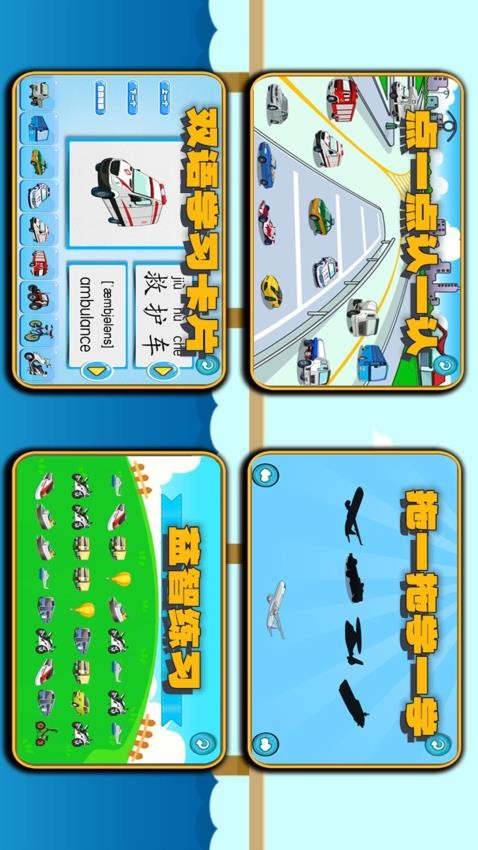 萌宝学交通工具app涵盖了多种类型的交通工具,包括汽车、火车、飞机、轮船等。每个交通工具都有详细的介绍和互动环节,帮助孩子们深入了解其特点、用途和工作原理。此外,该app还提供了丰富的互动游戏和测验,以检验孩子们的学习成果。