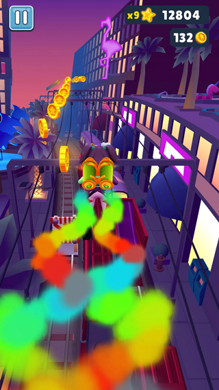 地铁跑酷可变速版国际服(Subway Surf)是一款备受欢迎的跑酷游戏,玩家将在地铁轨道上展开一场速度与激情的较量。游戏中,玩家需要控制角色在地铁轨道上不断奔跑,同时躲避障碍物和追捕者,收集金币和道具,挑战更高分数。