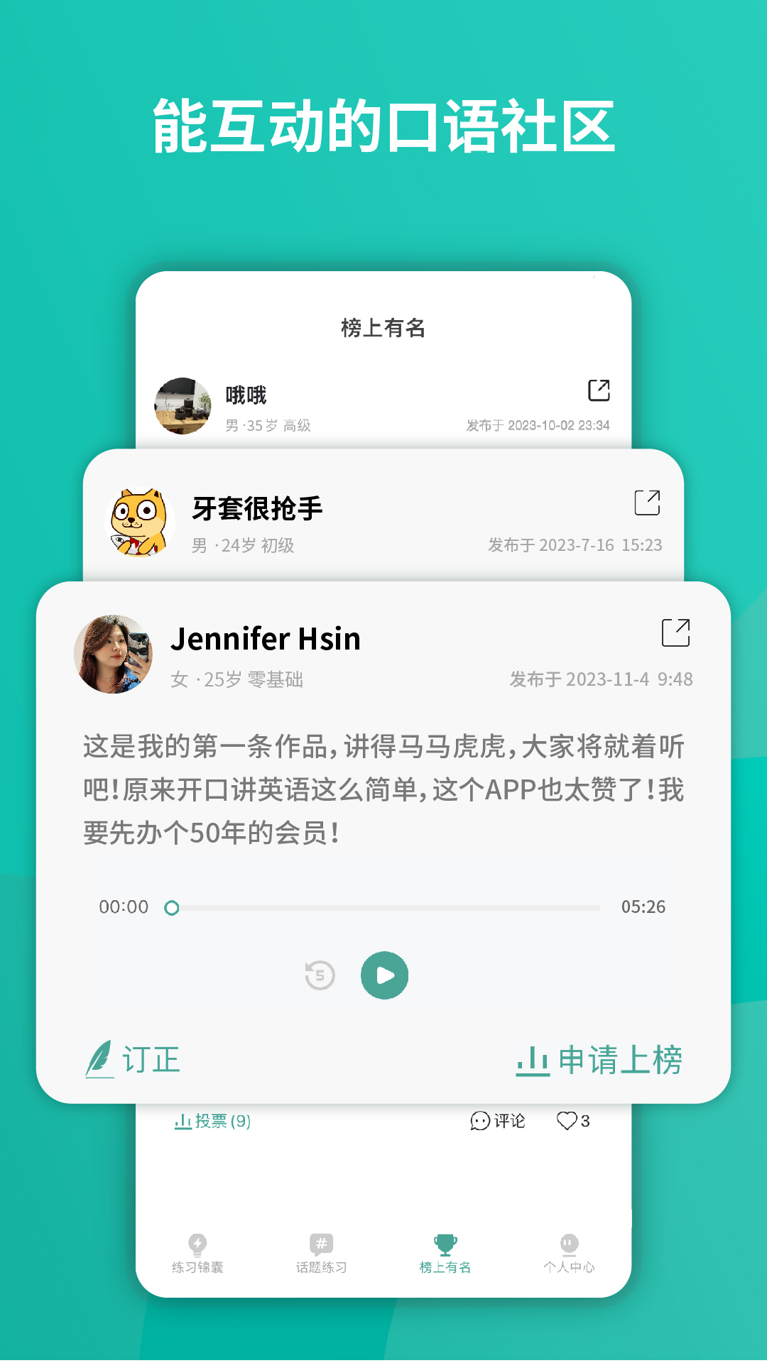 2. 实时语音识别和评估:油条口语能够实时识别用户的发音,并提供准确的评估和反馈,帮助用户纠正发音错误。