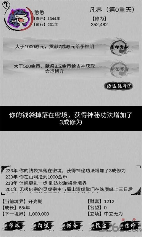 《不一样修仙模拟器》以修仙为背景,玩家需要在一个充满奇幻色彩的世界中,通过修炼提升自己的实力,探索各种神秘的洞府和遗迹,寻找珍贵的修仙资源。同时,玩家还需要经营自己的洞府,招募弟子,培养势力,与其他玩家进行交流和竞技。