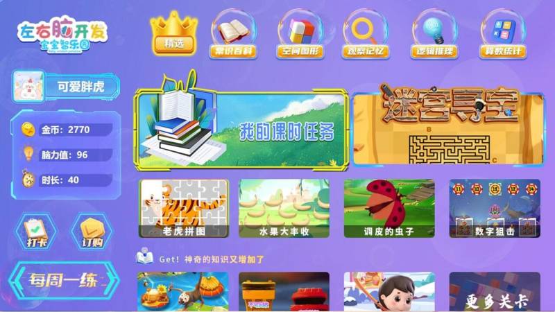 2. 思维训练:涵盖逻辑推理、空间感知等训练任务,锻炼思维能力和解决问题的能力。