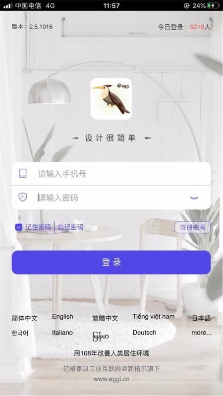 2.选择app语言,简体中文、English、繁体中文等语种都有