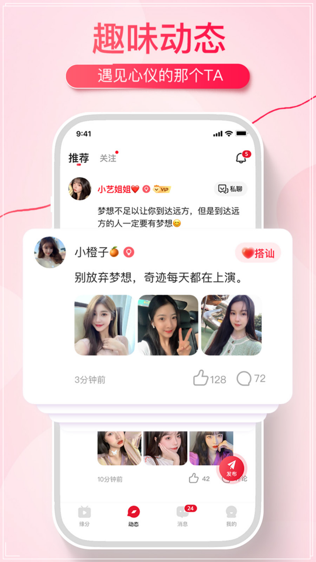 3. 动态分享:用户可以发布生活动态,展示个人魅力,吸引更多关注。