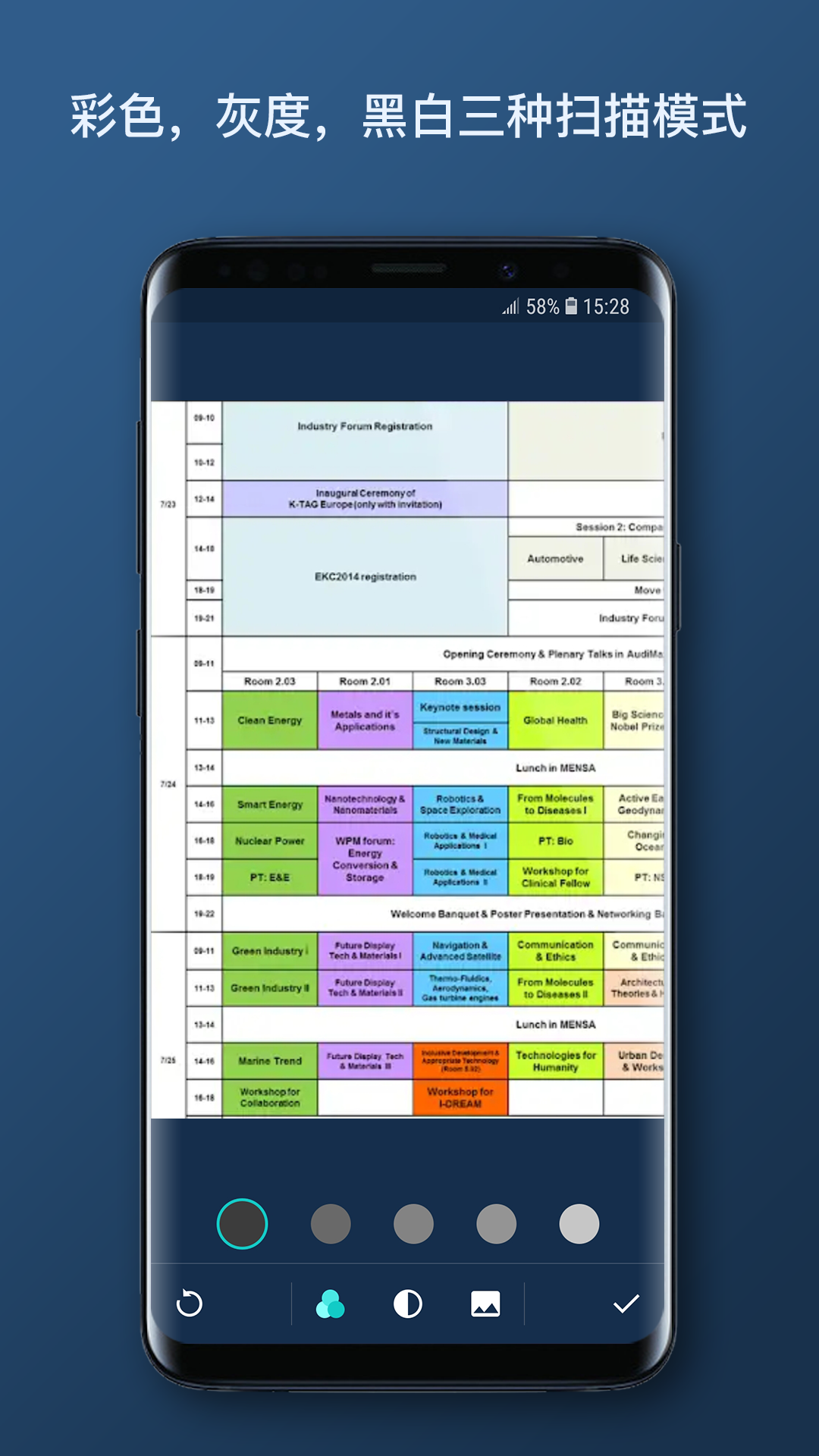 4. 自动裁剪和旋转:软件可以自动识别文档的边缘并进行裁剪,同时支持手动旋转和调整文档方向。